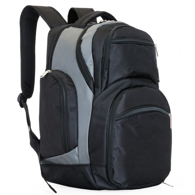Descrição: Mochila poliester para notebook com detalhes em nylon e neoprene. Possui compartimento grande com bolso interno, compartimento médio com detalhe interno, dois compartimentos frontais pequenos, compartimento térmico e compartimento pequen… Ver mais